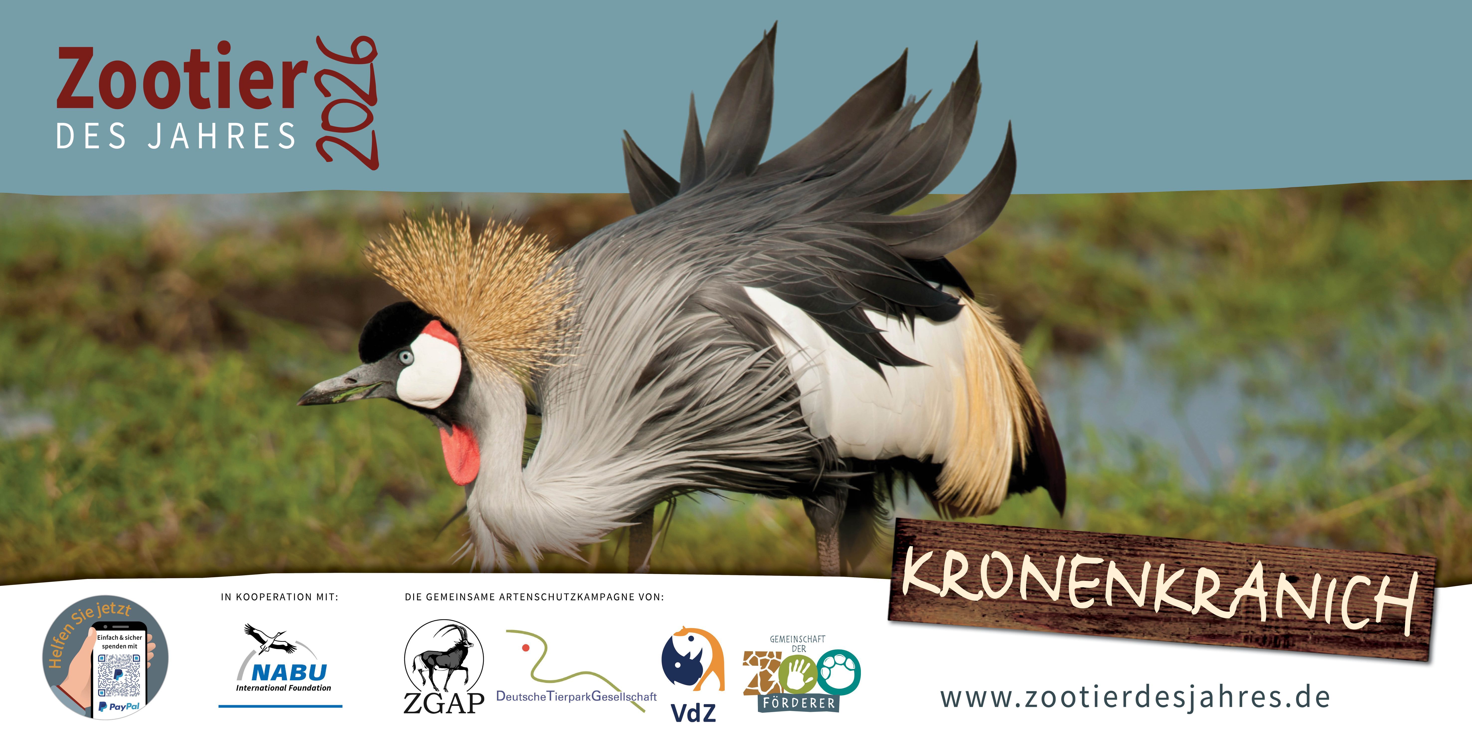 Das Zootier des Jahres 2026 ist der Kronenkranich.