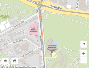 Von der U-Bahn-Haltestelle „Wilhelma" fährt alle 10-15 min die U13 (Richtung Feuerbach Pfostenwäldle) bis zur Haltestelle „Löwentor" (Abb.1). Von dort ist das Naturkundemuseum am Löwentor in 5 min fußläufig zu erreichen (Abb.2). Nach Ende der Veranstaltung im Naturkundemuseum bringt sie die U 13 (Richtung Hedelfingen) wieder zurück zum Haupteingang der Wilhelma.