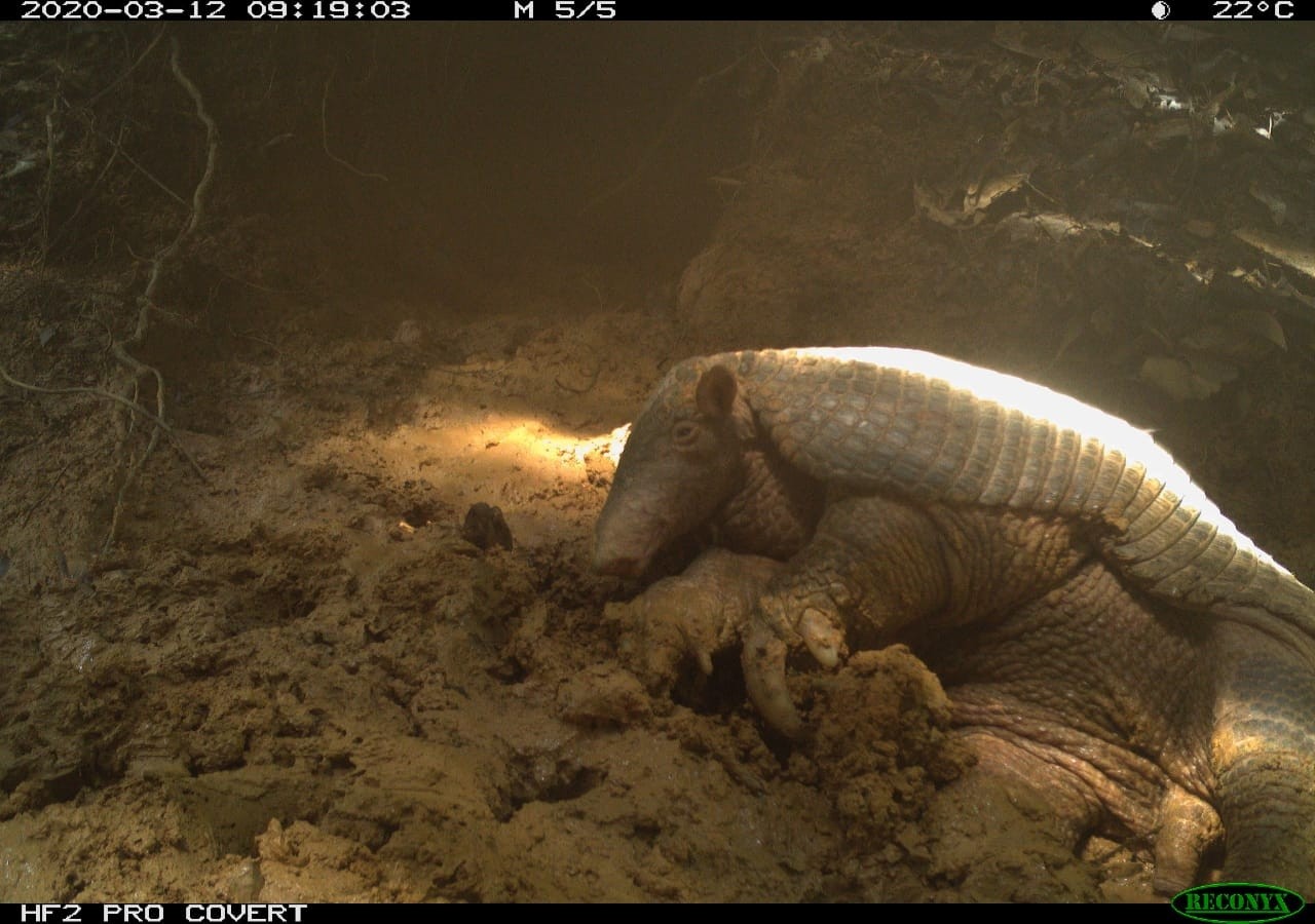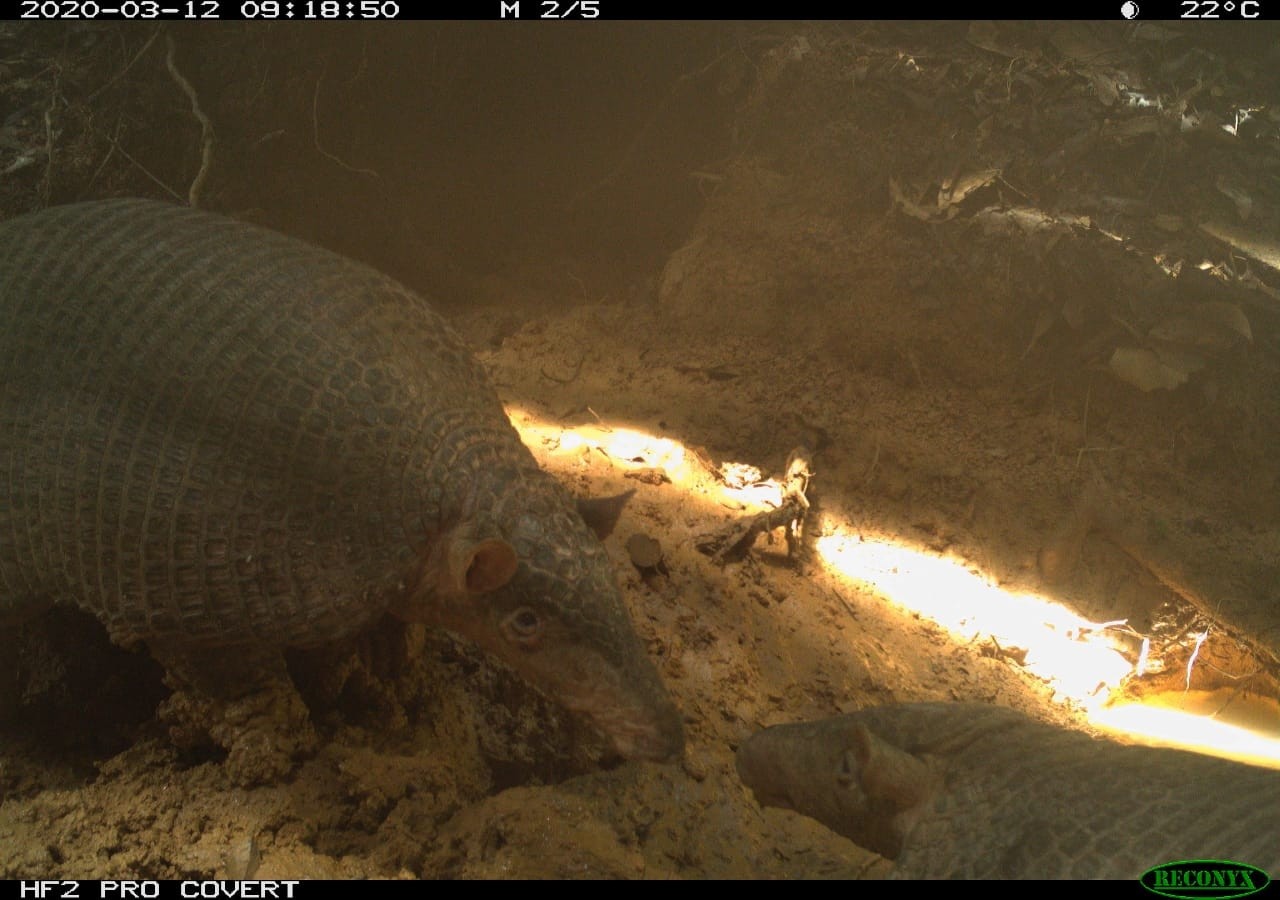 Das zweite Projekt im Rio Doce State Park schützt die letzten Riesengürteltiere des Atlantischen Regenwaldes Brasiliens. Feldforschung, vor allem mit Wildkameras zur Dokumentation der dort lebenden Tiere, und Umweltbildung sollen die örtliche Bevölkerung sensibilisieren und die illegale Jagd eindämmen. Beide Projekte haben bereits die ersten wichtigen Ergebnisse geliefert. Die jetzt erfolgte Auswertung der „Kamerafallen" aus dem Cerrado belegt, dass Riesengürteltiere an 49 Orten nachzuweisen sind. Und im Rio Doce State Park gelangen auf diese Weise äußerst seltene Aufnahmen von Riesengürteltieren am Tag und – noch erstaunlicher – von zwei männlichen Tieren in demselben Bau.