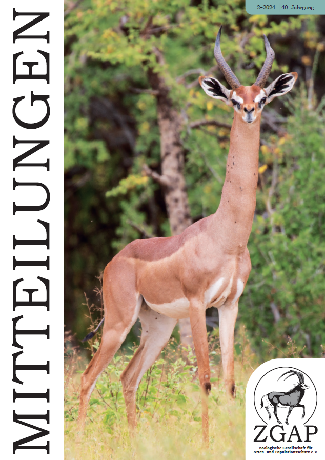 Als ZGAP-Mitglied erhalten Sie zweimal jährlich unsere in Fachkreisen sehr anerkannte Zeitschrift „ZGAP Mitteilungen“, die über Entwicklungen bei den von uns geförderten Projekten berichtet, andere artenschutzrelevante Themen aufgreift und Sie über das Vereinsgeschehen informiert. Diese Zeitschrift wird mit einem sehr hohen Maß an ehrenamtlichen Einsatz erstellt.