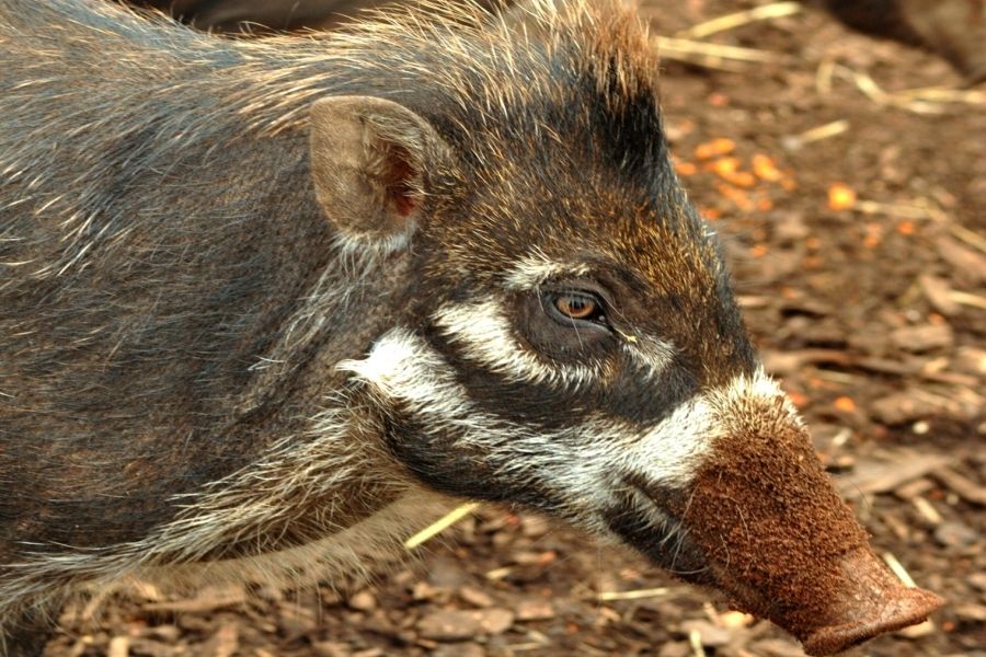 Gründe für die dramatische Entwicklung sind der Verlust des Lebensraumes (u.a. durch illegalen Holzeinschlag bzw. kommerziellen Kahlschlag, Ausbreitung der Landwirtschaft sowie Brandrodungen) und die Hybridisierung mit entlaufenen Hausschweinen bzw. Wildschweinen (Sus scrofa). Da die Tiere häufig Ernteschäden verursachen, werden sie zudem sehr stark bejagt und dienen in einigen Regionen immer noch als bevorzugte Nahrungsquelle.